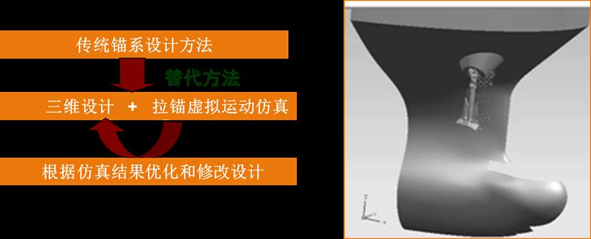 經(jīng)過與國內(nèi)行業(yè)權(quán)威設(shè)計(jì)院的合作過,并將該技術(shù)應(yīng)用于船舶建造中,對(duì)錨鏈筒、錨臺(tái)、錨唇、錨穴、錨、錨鏈、錨機(jī)、止鏈器、導(dǎo)鏈滾輪、船體等進(jìn)行三維設(shè)計(jì)和自動(dòng)建模,實(shí)現(xiàn)了三維錨系計(jì),保證了錨系設(shè)計(jì)中空間位置定位的準(zhǔn)確性,并通過三維軟件導(dǎo)出二維CAD圖紙,扭轉(zhuǎn)了一直以來二維圖紙與船廠錨系施工脫節(jié)的局面,極大提高了錨系設(shè)計(jì)的效率。除此之外,利用軟件的后期的仿真功能,模擬并預(yù)報(bào)收錨過程的動(dòng)態(tài)效果并給出調(diào)整方案。